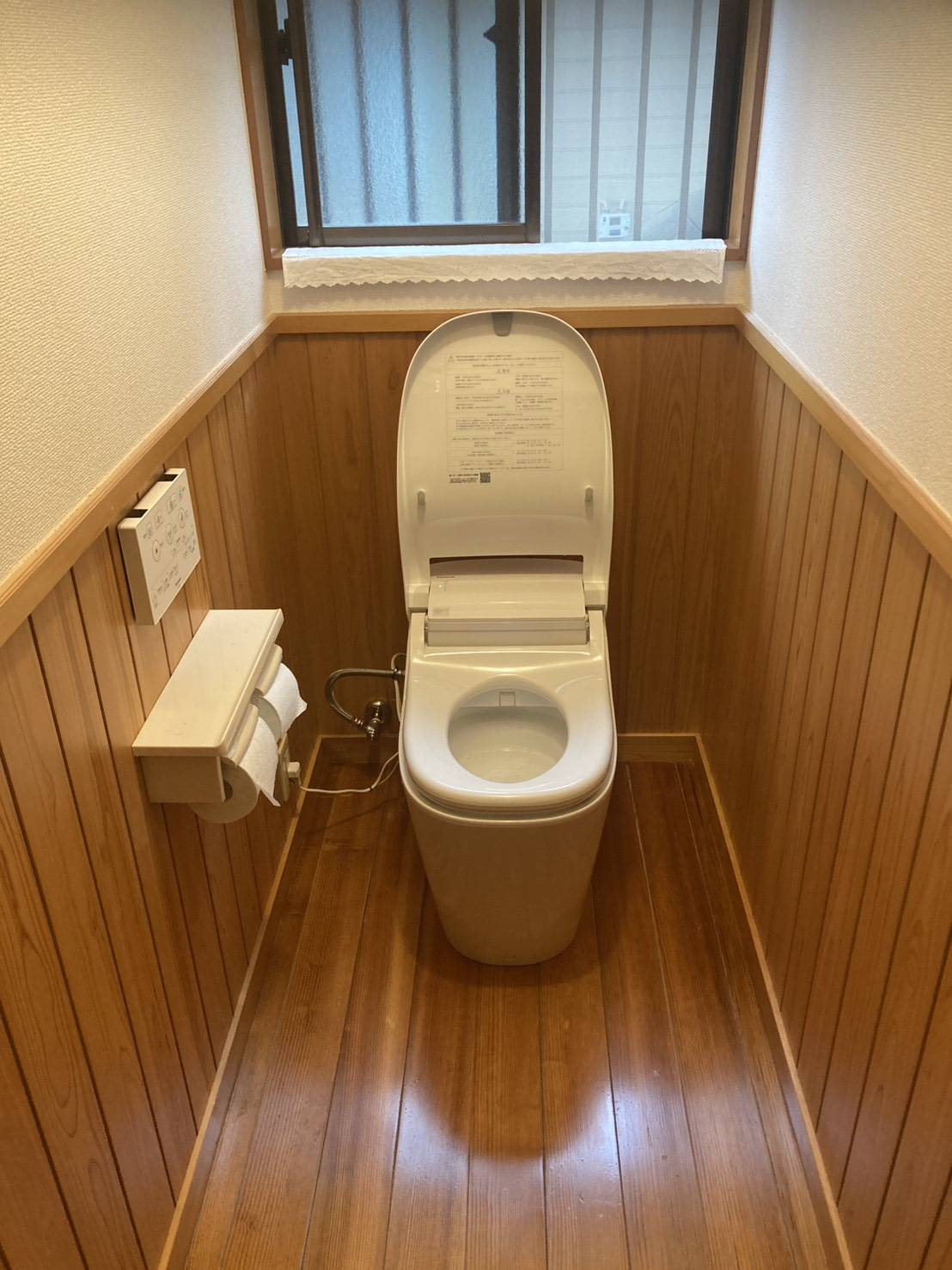 TOTOネオレストよりPanasonicアラウーノに取替えました。 お客さまに展示場ときめきシティまでお越しいただき、各社のトイレを見比べ、座り比べた結果、 アラウーノに決まりました。 泡で便器内を洗ってくれるお掃除ラクラクのトイレです!!